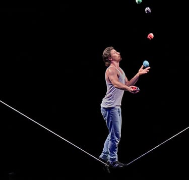 Since 2018 we - Louise & Daniel - form the artistic duo flexoncirc! We conquer the hearts of spectators around the world with our juggling, slack rope and partner acrobatics performances and are constantly thinking up and implementing new acrobatic performances.