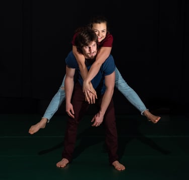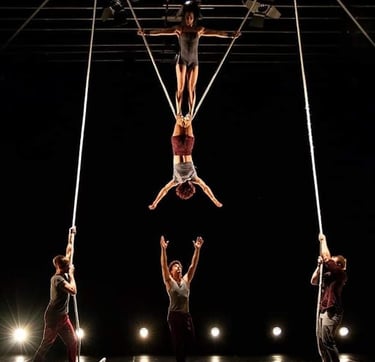 As circus educational trainers, we teach at circus and acrobatic events worldwide. We share our experience from the International Circus and Theater School CAU in Granada, where we spent two years learning about acrobatics, theater, dance, aerials and hand to hand acrobatic from the best teachers.